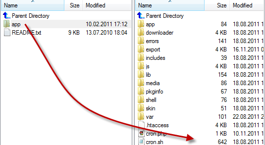 Upload the extracted folders and files into the root directory of your Magento installation. The root directory of Magento is the folder that contains the directories "app", "js", "skin", "lib" and more. All folders should match the existing folder structure. If one of our extensions is already installed and you're updating it, make sure to overwrite the existing files of the extension.